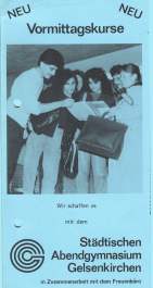 Seit Februar 1989 bereitet eine Arbeitsgruppe von Lehrerinnen des Abendgymnasiums in enger Zusammenarbeit mit dem Frauenbüro der Stadt Gelsenkirchen die Errichtung von Vormittagskursen vor. Mit Beginn des Sommersemesters 1990 bietet das Abendgymnasium Vormittagskurse an. die sich vor allem an kindererziehende Frauen und Berufstätige mit atypischen oder wechselnden Arbeitszeiten richten.