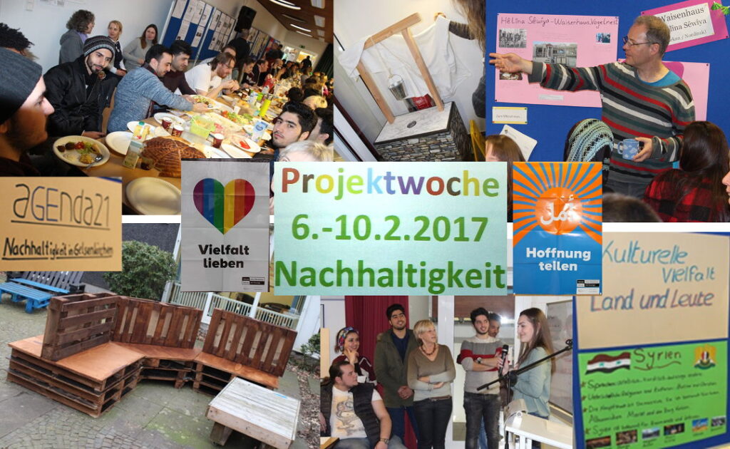 Im Februar 2017 findet eine (erstmals) thematisch ausgerichtete Projektwoche statt, die zahlreiche Facetten des Themas Nachhaltigkeit aufgreift und zwei Nachhaltigkeitsprojekte auf den Weg bringt: ein „Brunnenprojekt“, dessen Erlöse der Unterstützung eines Waisenhauses („Vogelnest“) im Nordirak dienen sollen, sowie das Projekt „Deckel drauf!“, mit dem Impfprojekte in Afrika unterstützt werden sollen.